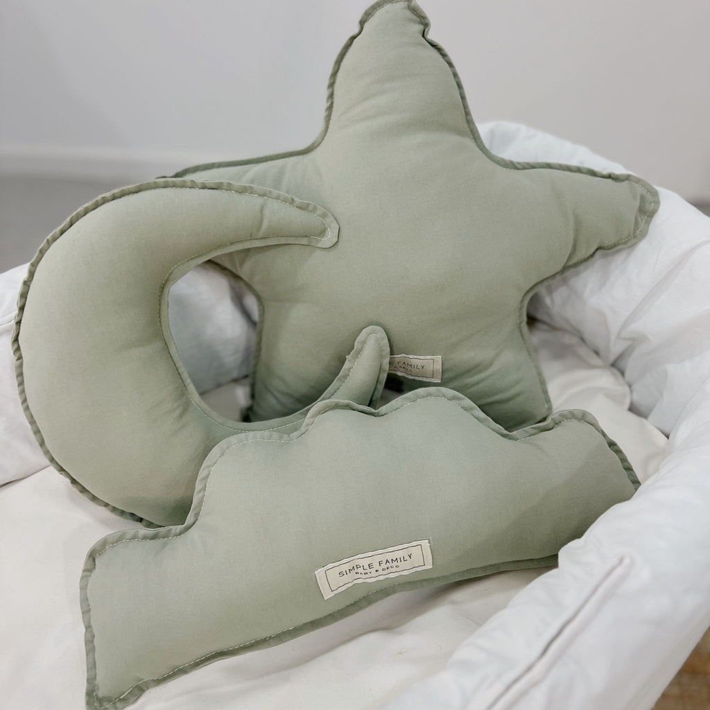 Set Cojines Deco "Nube, Estrella, Luna" verde oliva